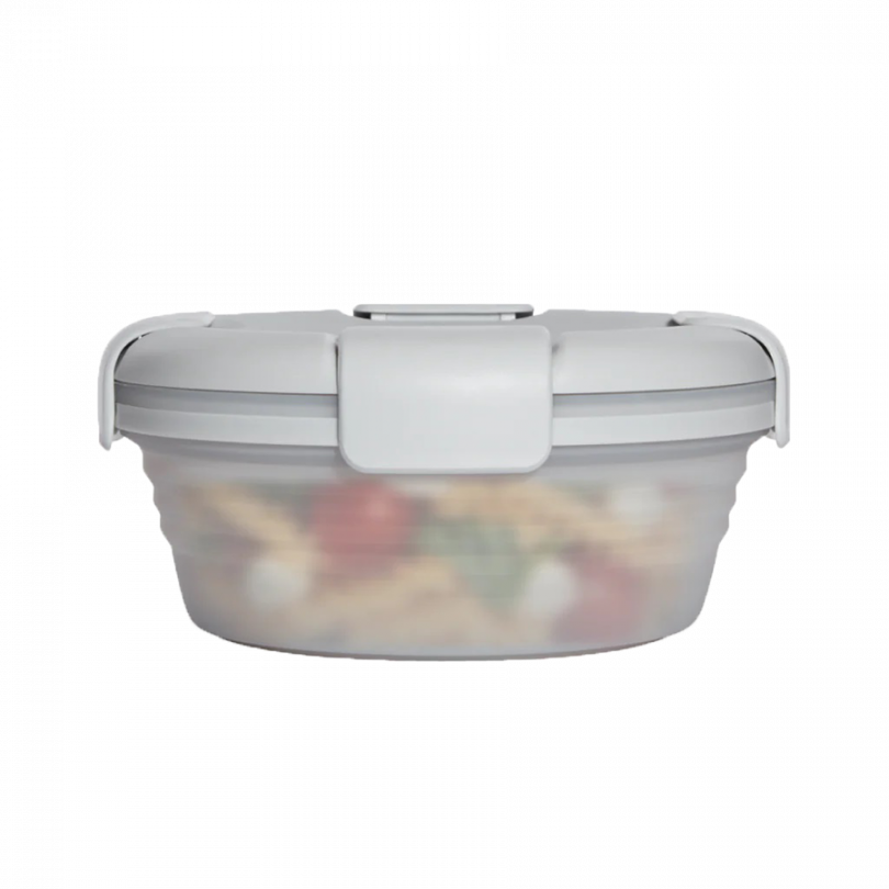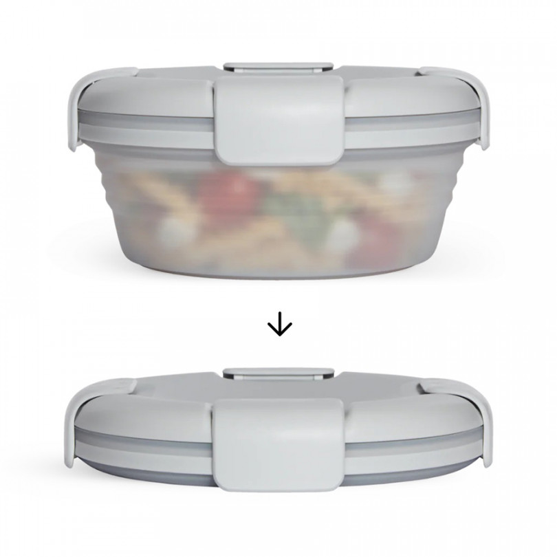 Складной и многоразовый. Крышка с фиксаторами закрывается герметично, поэтому ваш обед не вытечет из ланч-бокса. Удобно брать с собой готовое блюдо или просто перекусы. Подходит для использования в микроволновой печи, поэтому вам не составит труда разогреть ваш обед, не перекладывая его в тарелку. А после того, как поели, вы легко сложите его. В сложенном виде он занимает мало места и его можно положить в сумочку, рюкзак. Помогает Вам сократить использование одноразовой пластиковой посуды, которая не перерабатывается и после использования попадает на свалку, загрязняя окружающую среду.