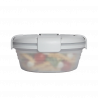 Крышка с фиксаторами изготовлена из пищевого полипропилена, - пластика, который не содержит бисфенол А (BPA), бисфенол С (BPS), свинец, фталаты, поливинилхлорид (PVC) и кадмий. Полипропилен пригоден к переработке после окончания срока использования. Корпус ланч-бокса изготовлен из прочного пищевого силикона (LFGB certified silicone rubber), его можно использовать для горячих блюд.